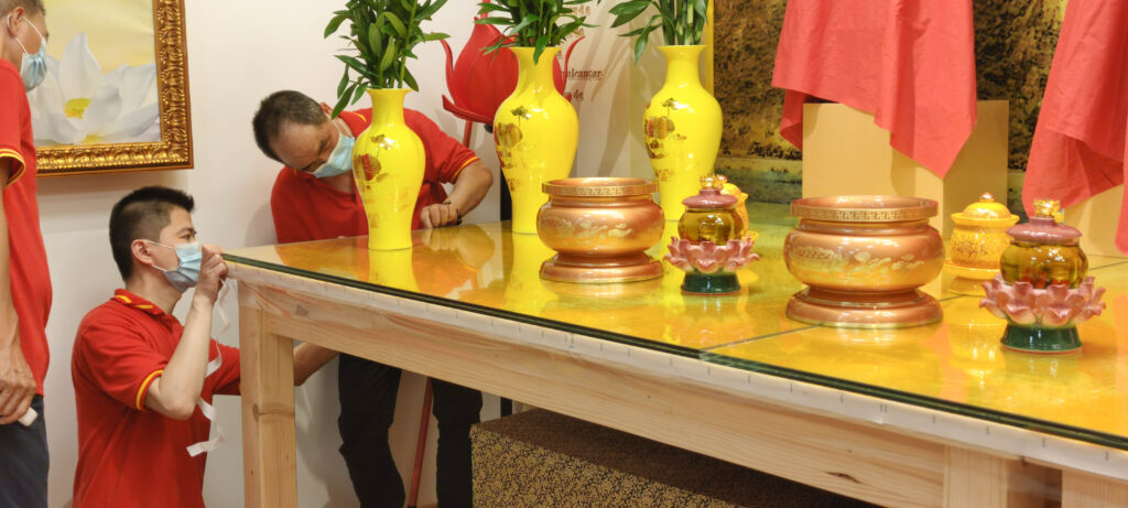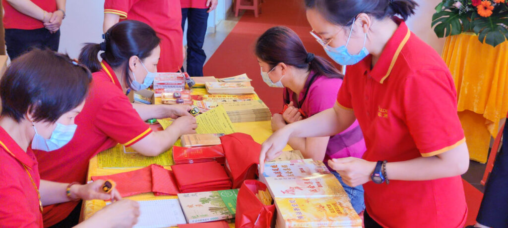 开光仪式结束之后,义工们各就各位开始迎接排队上香的佛友们。