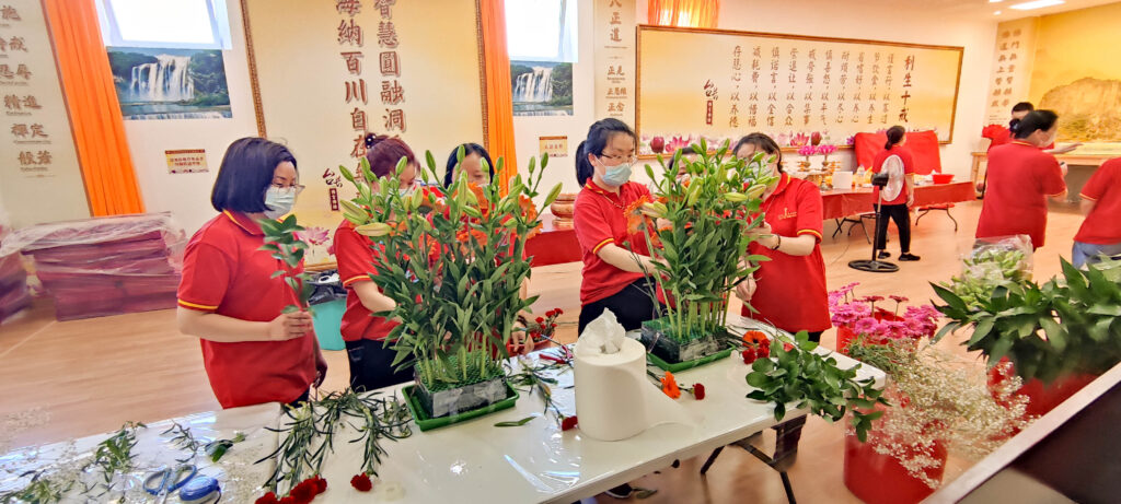 佛台组,供花组,供果组… 每位义工都以对佛菩萨的至诚之心,一丝不苟地进行着各自的岗位。