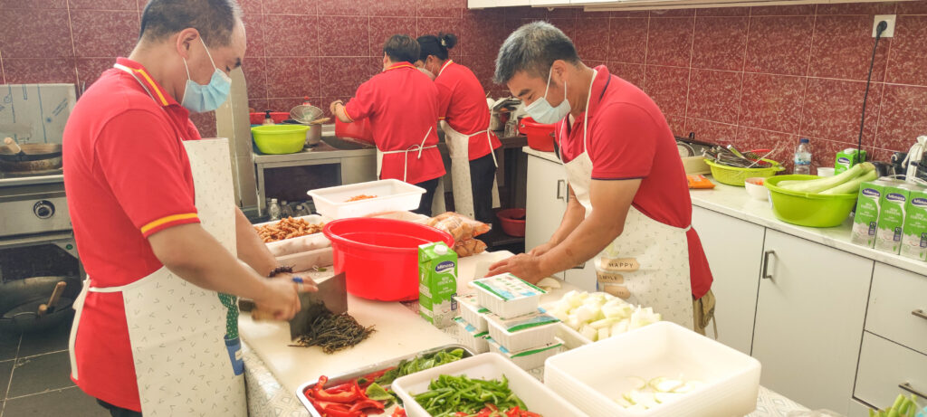 为了在开光当天给大家提供缤纷美味的素食,膳食组的师兄们提前一天就开始通宵准备。感恩师兄们!